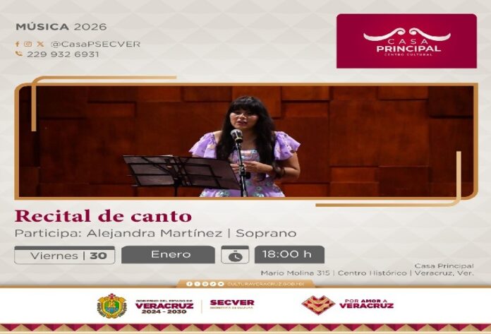 Xalapa, Ver., 14 de enero de 2026.- La Secretaría de Cultura de Veracruz (SECVER) invita al público a asistir al ciclo de recitales musicales que tendrán lugar los viernes 16 y 30 de enero, a las 18:00 horas, en el Centro Cultural Casa Principal, en el puerto de Veracruz. La entrada es libre.