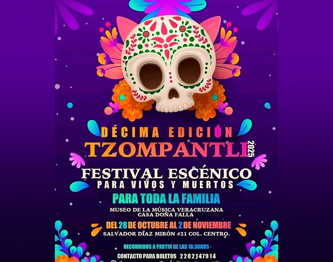 En el parque Bicentenario, del 28 de octubre al 2 de noviembre, a partir de las 18:30 horas, se desarrollará el Festival Cultural Mictlán; a esta misma hora y en las mismas fechas, en el Museo de la Música Veracruzana se tendrá el Festival Escénico para Vivos y Muertos Tzompantli.